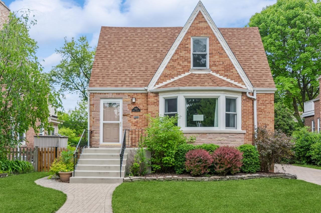 Solid 1950's brick Tudor in Edgebrook with a surprisingly sleek and sophisticated interior. The LR and DR are combined into one large open space with warm HW floors and light filled from a large bay window. The eat-in kitchen is fresh and contemporary with an abundance of maple cabinets topped with granite countertops and highlighted with a tiled backsplash and walls. A nice open space for casual meals, adjacent to the welcoming family room with a wall of windows overlooking the backyard and easy access to the patio and garage. There are 2 good-sized bedrooms and a full bath on the 1st floor. Up the modern staircase to a uniquely designed primary suite. The 2nd floor is also filled with light from several sky lights and a row of clerestory windows. The spacious bedroom includes an ideal sitting area along with a built-in window seat. The spa-like full bath includes double sinks, soaking tub, walk-in glass shower and heated towel rack. There is a separate office space down the hall along with 2 large closets which include built-in shelves and drawers. The finished basement has a great rec room, alongside a nice work out room. There is a separate and huge laundry room/work room which includes built-ins and plenty of storage. The lovely fenced in backyard is perfect for entertaining or relaxing with a striking concrete paver patio, landscaped grassy area and 1.5-car garage with gated paved side drive. Recent updates include: Roof: House and garage 2020, flat roof on Family Room 2017, Windows: Kitchen 2010, 1st Fl 2007, 2nd Fl 2004, Family Room 2000, Furnace 2016, A/C unit 2018, Water Heater 2020, Driveway and Patio 2017. Lovely Edgebrook location within walking distance to Wildwood School and Park, close to Caldwell woods with walking and bike trails, the Metra and charming town of Edgebrook, with easy access to 90/94 the city and O'Hare. Move-in ready, schedule your showing today!