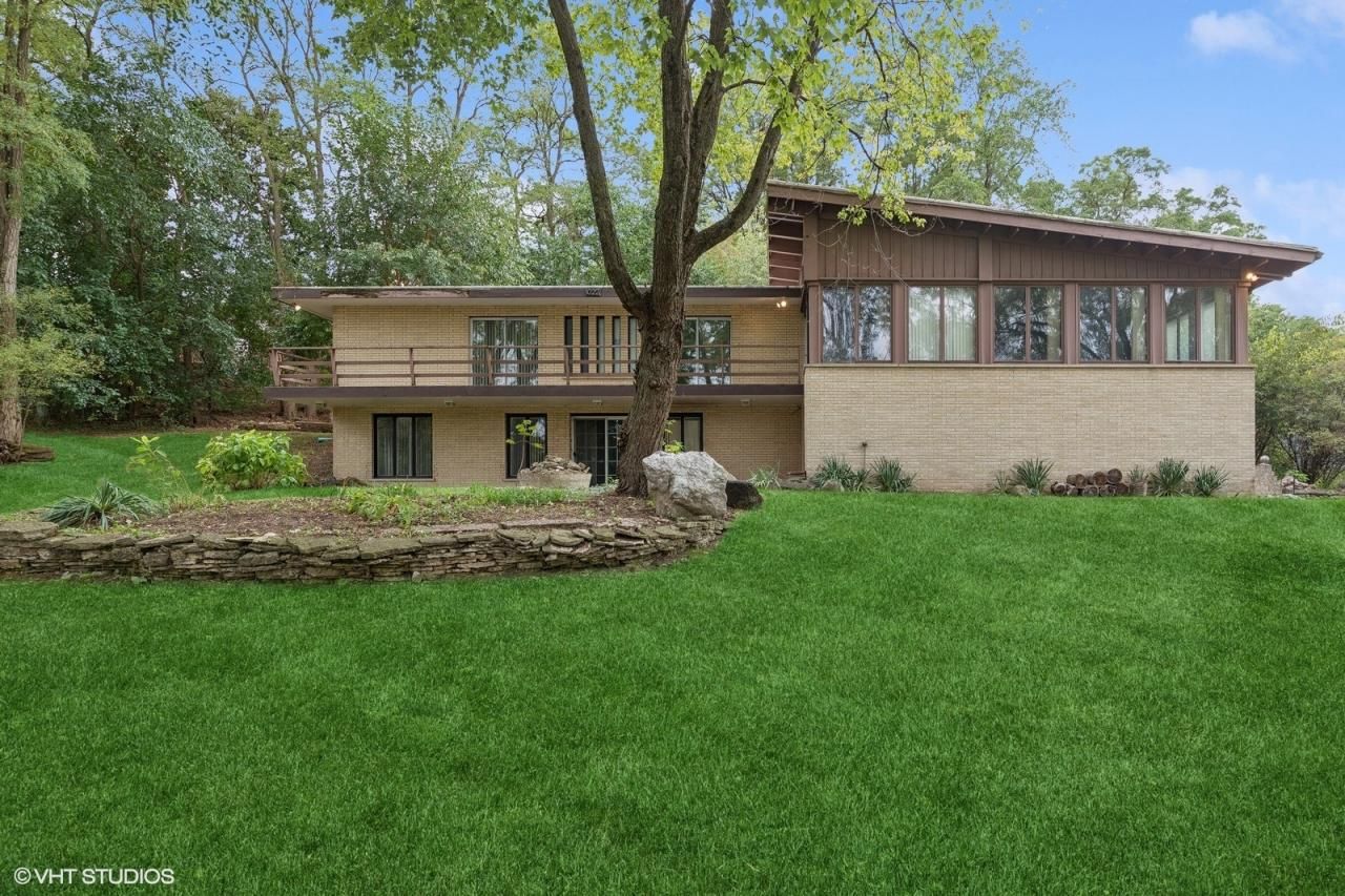 This is it! Your chance to envision a gorgeous mid-century modern brick hillside ranch, atop a hill with long driveway and attached oversized 2 car heated garage and massive workshop. Featuring 2 master suites, 2 laundry rooms and a theater room with projector screen, this home has so much potential. It is to be noted that this home is in need of repairs and renovations, and it is being conveyed as-is. There are no supporting interior walls which means the design ideas are endless! Enjoy vaulted ceilings and views of lush greenery and wildlife atop your hillside home. Truly a unique property awaiting your ideas.