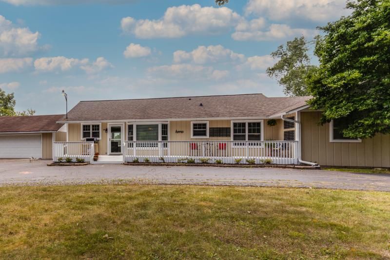 A hidden gem awaits the buyer who wants it all in this fantastic updated ranch home with 9 car garage capacity. Have it all from boat, motor home, snowmobiles and cars! Two of the three are heated and one ideal for auto/boat detailing service. Privacy is not a problem tucked away on 1.11 acres with serene setting from huge deck overlooking pond. Welcoming porch and circular drive all freshly landscaped. Three bedrooms, two baths, four season room, main floor laundry, full basement finished with additional 1/2 bath and huge storage area. Updated kitchen is open to living room with vaulted ceiling, stone tile gas fireplace, and flooded with beautiful natural light! Master suite is amazing with gorgeous master bath featuring walk in shower. Hall bath also updated has granite vanity with dual basin sinks. Enjoy the seasons from either the four season room inside or the expansive deck ideal for entertaining with bar area and plenty of seating outside. Mechanicals updated in 2016 including tankless water heater, roof 2013, remodeled 2013. Seller hates to leave, but needs to minimize. Taxes reflect senior, and senior freeze..seller states she was required to have flood plain insurance as the rear of lot is in the flood plain, but has NEVER had an issue.